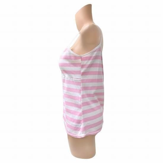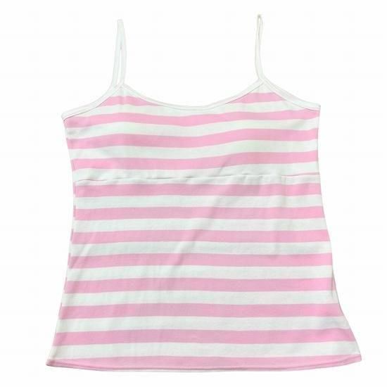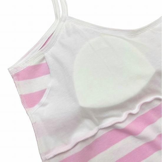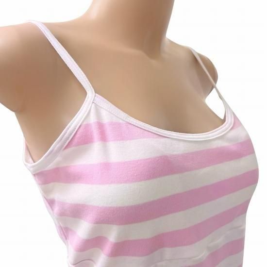 【オリジナル】 綿100%ピンクボーダー パッド付キャミソール